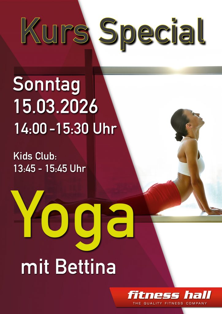 Am 15.03. ist es wieder so weit: Unser monatliches Kurs-Special steht an. Von 14:00 bis 15:30 Uhr gibt Bettina eine Extraportion Yoga – 90 Minuten ganz bewusst für dich. Mehr