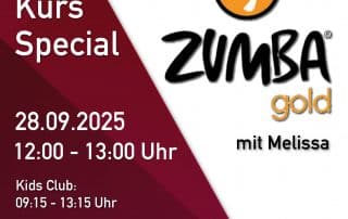 Kurs-Special im SeptemberAm 28.09. ab 12 Uhr laden wir Dich zu unserem monatlichen Highlight ein! Dieses Mal wartet auf Dich Zumba Gold – perfekt, wenn Du langsam starten möchtest. Die Bewegungen sind speziell auf Anfänger, ältere Teilnehmer und Menschen mit eingeschränkter Bewegungsfähigkeit angepasst. Spaß, Musik und Bewegung stehen dabei im Vordergrund Für Familien ein Plus: